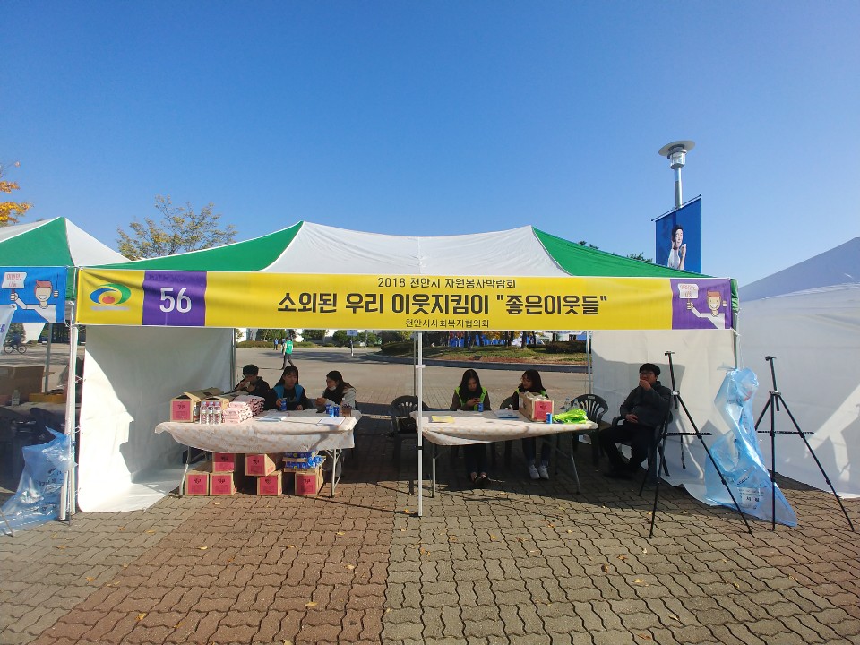 천안시 사회복지협의회는 지난 10월 20일 천안종합운동장 오륜문광장에서 진행되었던 '2018 천안시 자원봉사 박람회'에 부스 참여 기관으로 참여하였습니다.